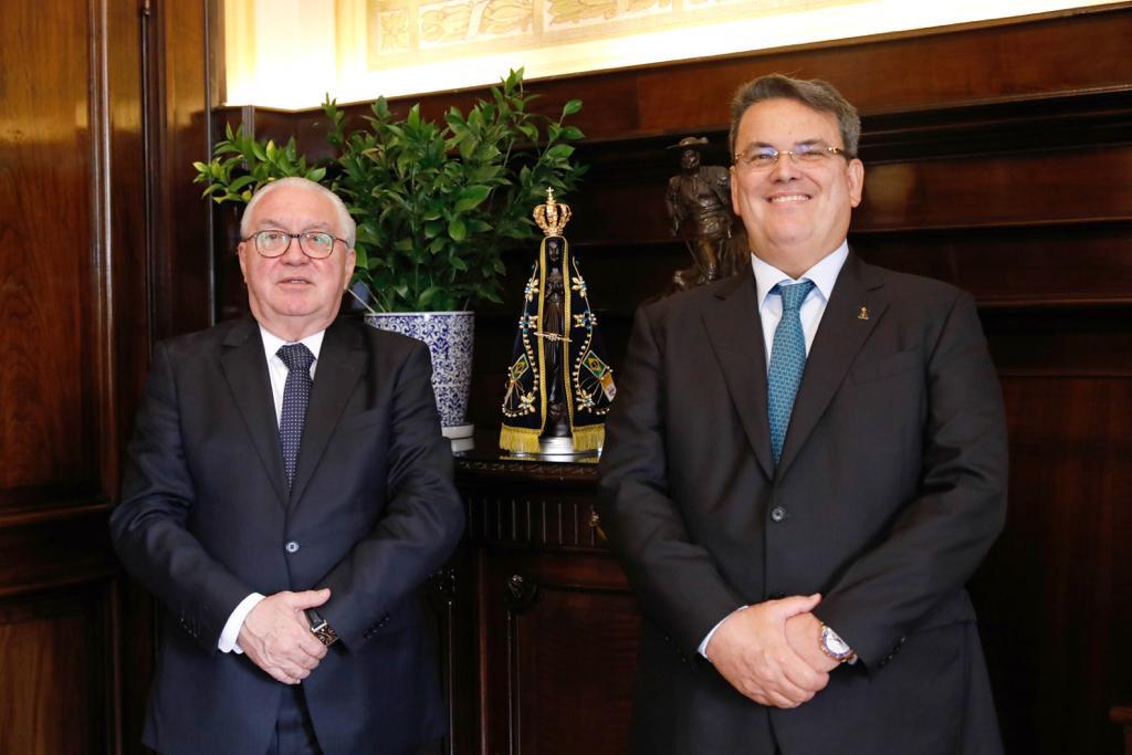 Os presidentes dos Tribunais de Justiça do Rio de Janeiro, desembargador Claudio de Mello Tavares (gravata azul), e de São Paulo, Manoel de Queiroz Pereira Calças, no gabinete da Presidência em São Paulo, durante a reunião do Conselho dos Tribunais de Justiça do Brasil, que terminou ontem (03/12) na capital paulista.