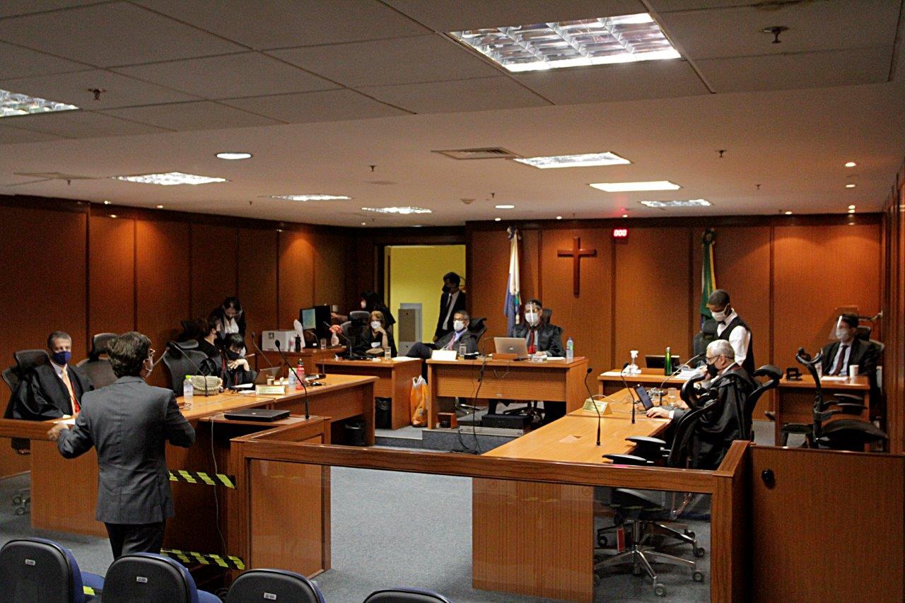 Para manter a segurança dos envolvidos nos julgamento foi limitada a presença dos advogados. Assim, somente foi permitida a permanência no ambiente dos advogados das partes durante o julgamento do seu caso.
