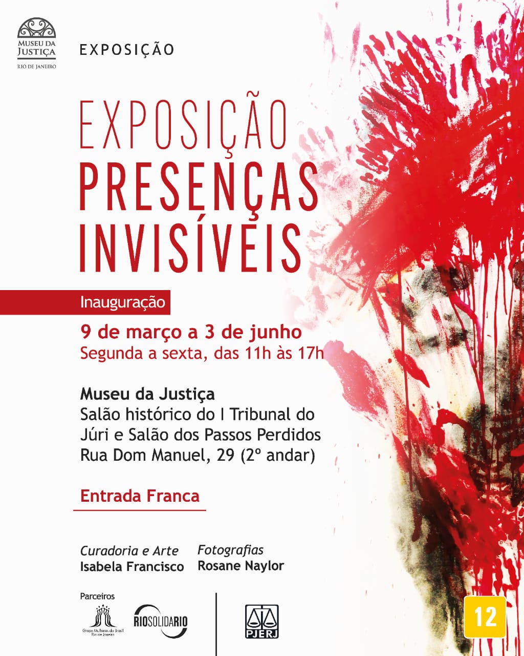 O Museu da Justiça do Rio de Janeiro inaugura hoje, dia 8 de março, quando se comemora o Dia Internacional da Mulher, a mostra “Presenças Invisíveis”, que apresenta uma arte inovadora, composta por intervenções dramáticas e comoventes feitas por mulheres que sofreram violência doméstica e hoje vivem em abrigos.